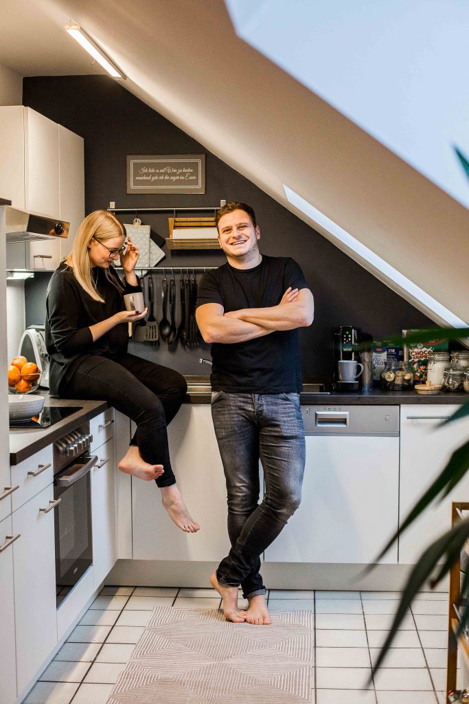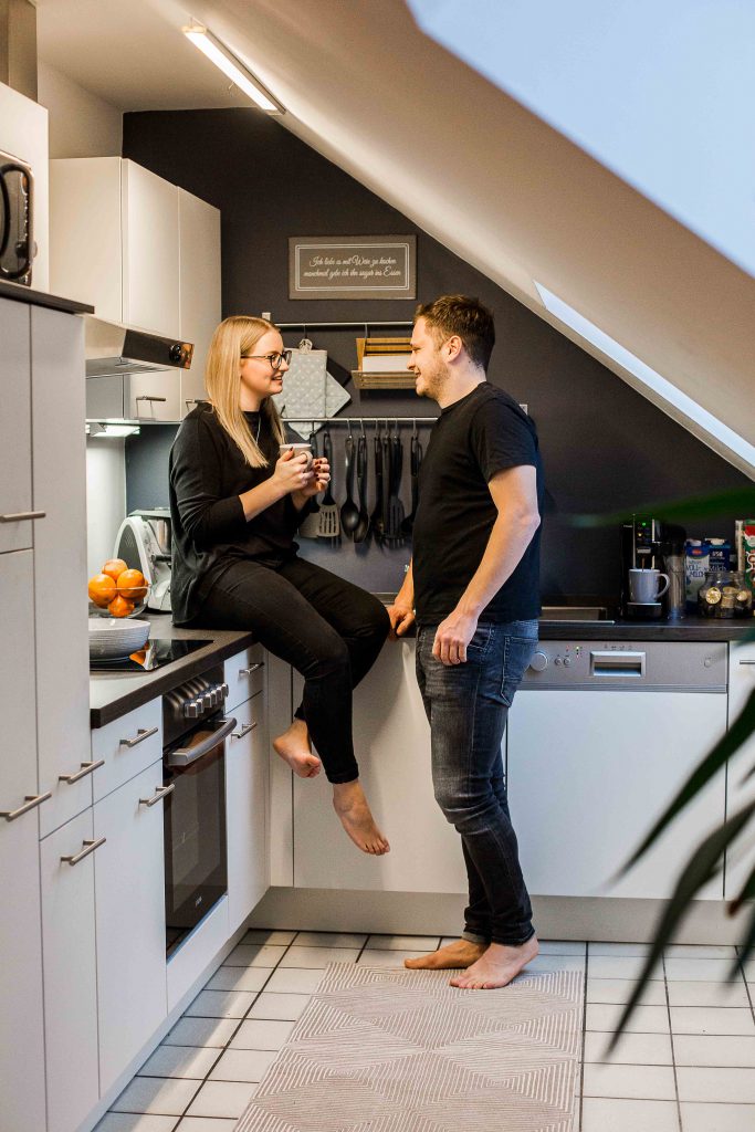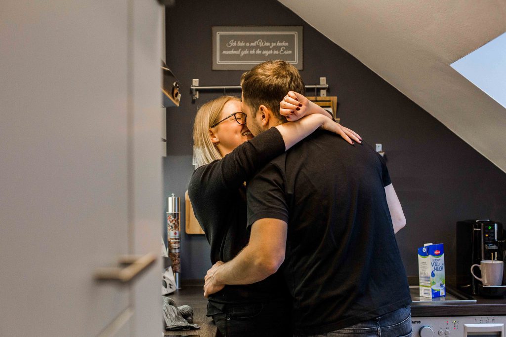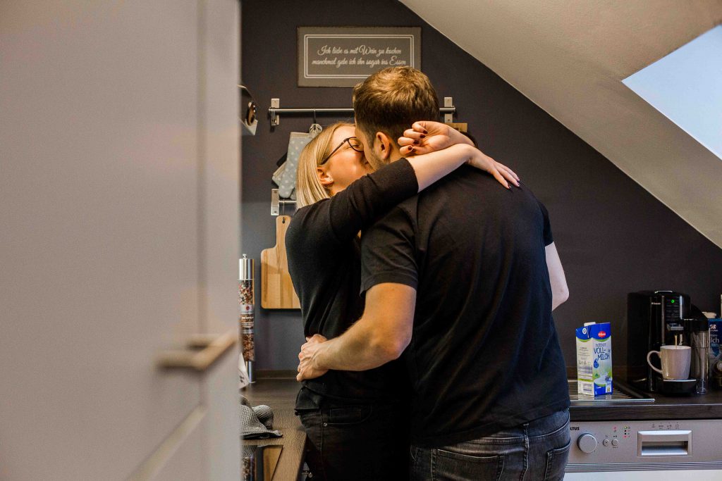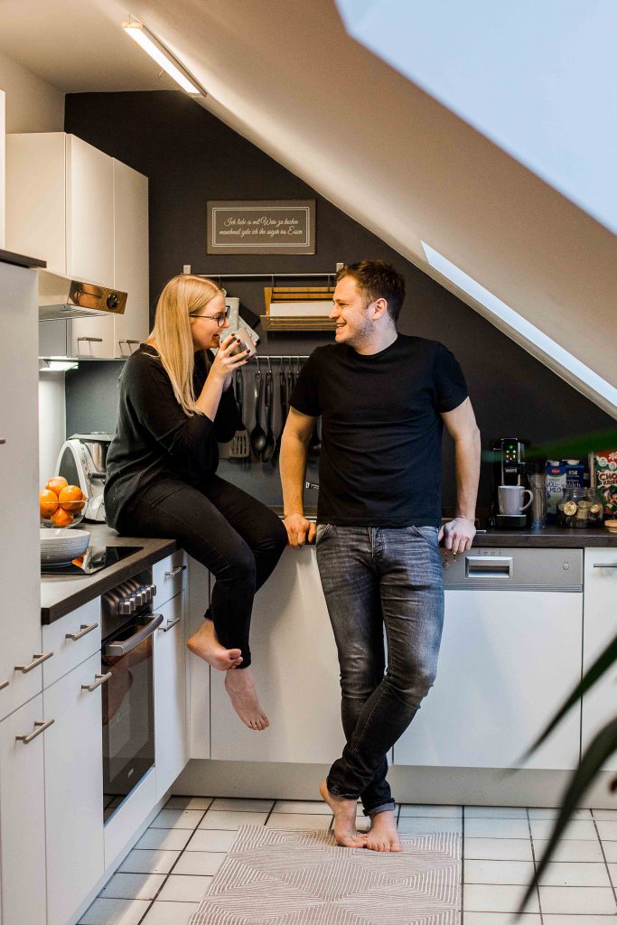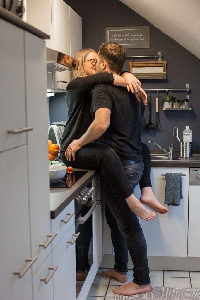 Auch die Küche bietet sich immer als schöne Fotolocation an. Beim Kaffee trinken, gegenseitig füttern oder einfach beim Kuscheln. Auch zusammen kochen oder backen gibt tolle Bilder. Je nachdem ob Ihr sowas auch zusammen macht. Wir wollen hier ja Eure Geschichte festhalten und nicht irgendeine.