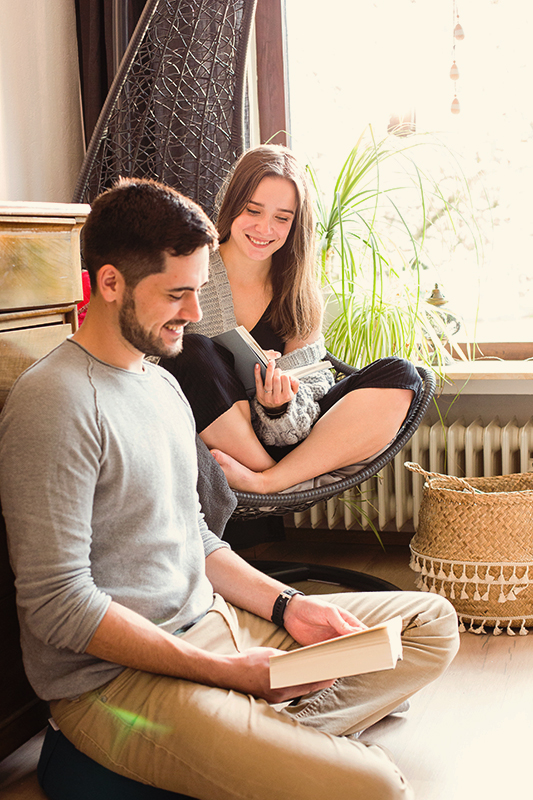 Die beiden studieren und lernen viel zusammen. Deshalb durften auch die Bücher hier nicht fehlen. Eure gemeinsame Zeit festhalten und Erinnerungen schaffen. Das macht ein Homestoryshooting so besonders. Ob sich die beiden in ein paar Jahren auch noch so an diese Zeit erinnern?