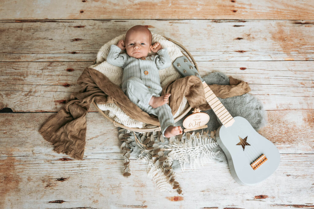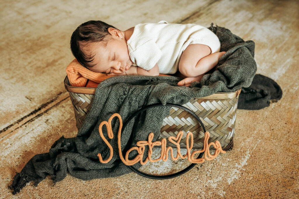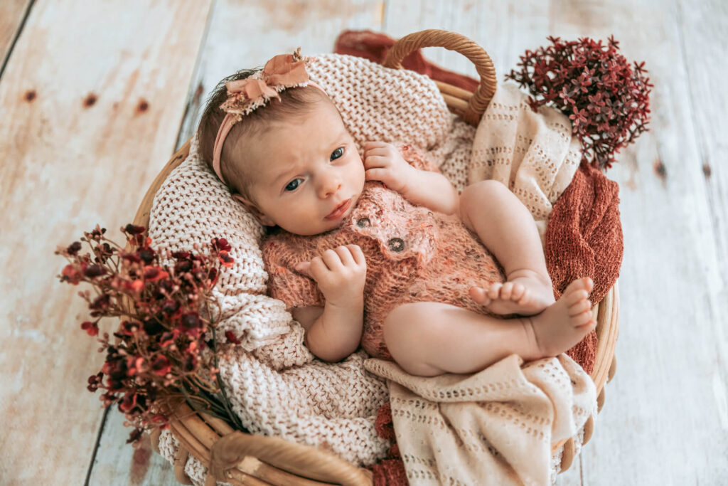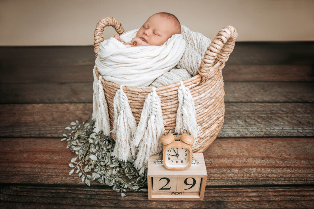 Ein Newborn-Set besteht meist aus einem Korb oder Bett, passenden Accessoires, Wraps, Dekopflanzen und passende Outfits. Alles was hierzu benötigt wird, habe ich in meinem Studio vor Ort. Körbe, Decken, Tücher, Outfits, Haarbänder, Mützen, kleine Holzschilder, Geburtsdaten in Form von Uhr und Kalender, Kuscheltiere, u.v.m. Ihr müsst also gar nichts für das Shooting besorgen.