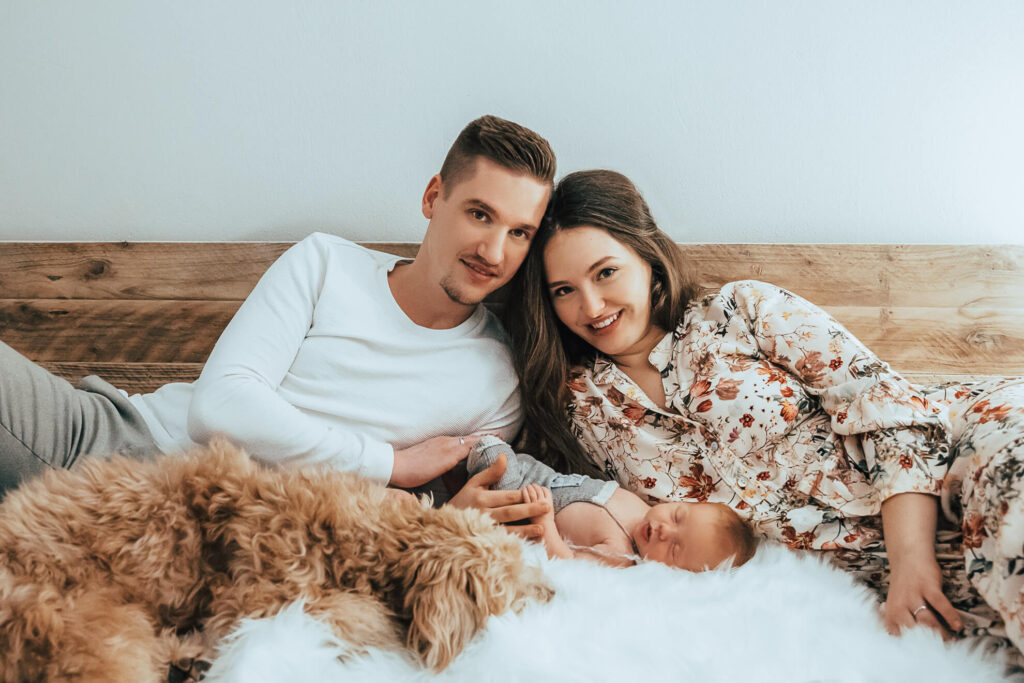 Bilder von Euch als kleine Familie gehören für mich zu einem Newbornshooting dazu. Hier könnt Ihr es Euch gerne auf meinem Studiobett gemütlich machen und ganz viel miteinander kuscheln.