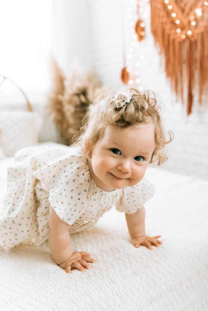 Es lernt Dinge wahrzunehmen, sich fortzubewegen und auch seinen eigenen Willen kennen. In der Welt gibt es einiges zu entdecken für die kleinen Wesen. Es krabbelt vorwärts, rückwärts oder sogar seitwärts!? Die Zeit vergeht wie im Flug.