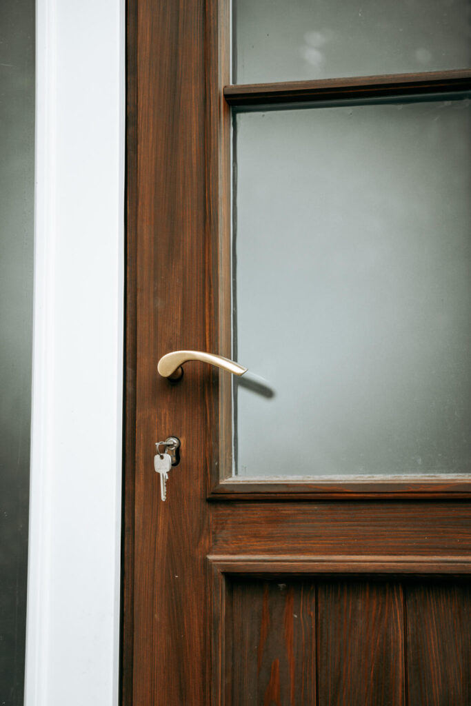 Alle Fenster sind drin, die Haustür ist fertig gezimmert (hier fehlt nur noch der passende Türgriff), die Elektrik und der Estrich sind auch fertig - dann kam eine lange Sommerpause.