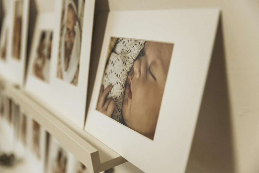 Dann geht es weiter und ich führe Dich und Deine Familie in den nächsten Raum. Hier sind alle Abzüge des Shootings in Passepartouts an einer Wand präsentiert. Es erwartet Dich eine beeindruckende Auswahl an Bildern, die je nach Buchung 25 bzw. 35 Stück umfassen, je nachdem. Du und Deine Liebsten könnt Euch dann in aller Ruhe Zeit nehmen und die Drucke anschauen und auswählen.