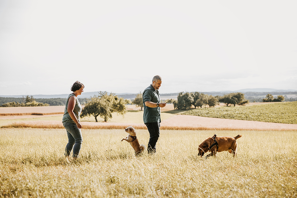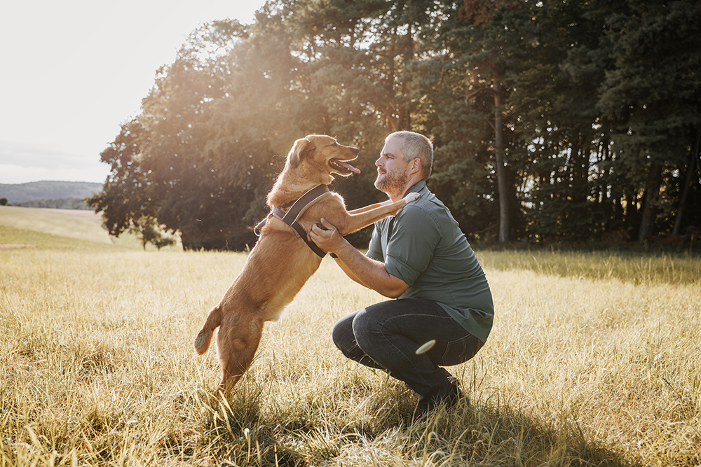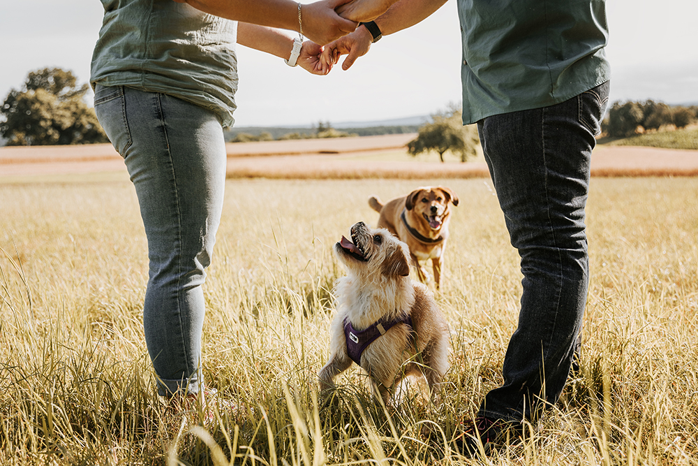 Solltet Ihr als Paar zu einem Outdoorshooting kommen und Euer Hund irgendwann keine Lust mehr haben, könnt Ihr gerne eine Begleitperson mitbringen, die sich zwischenzeitlich um ihn kümmert.