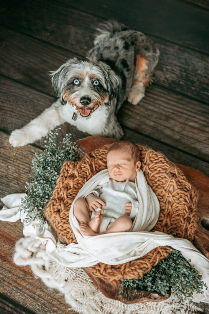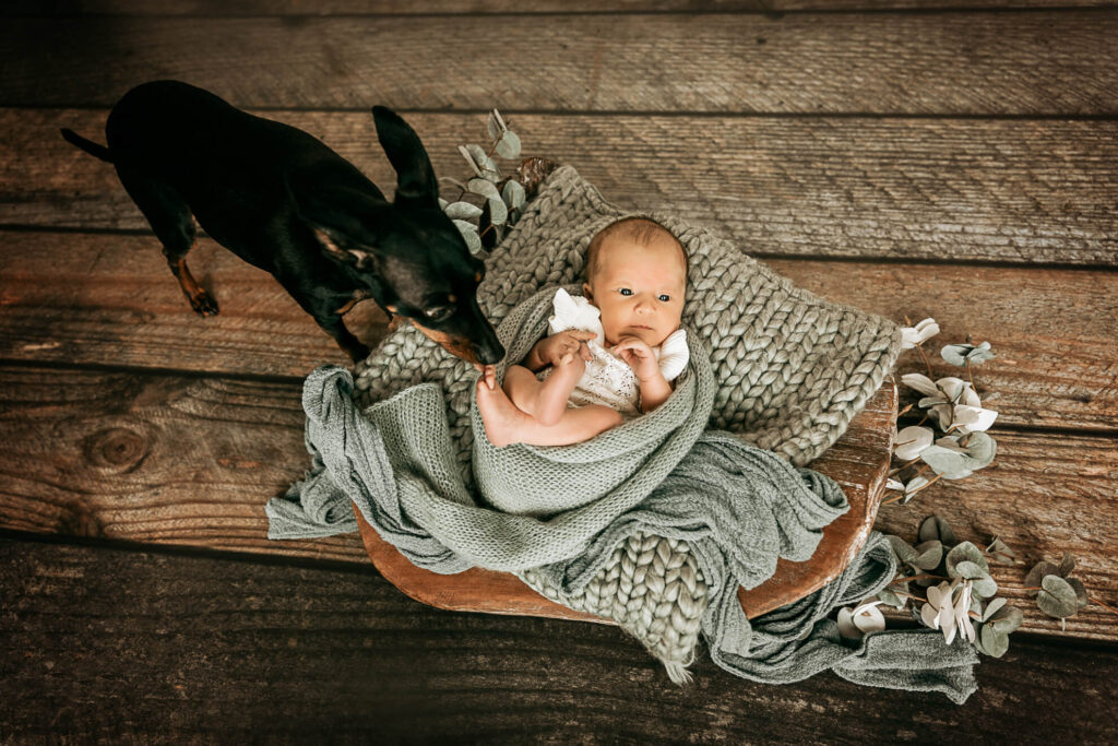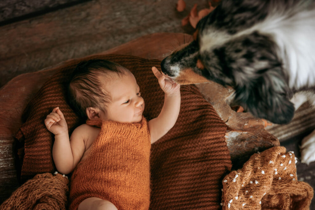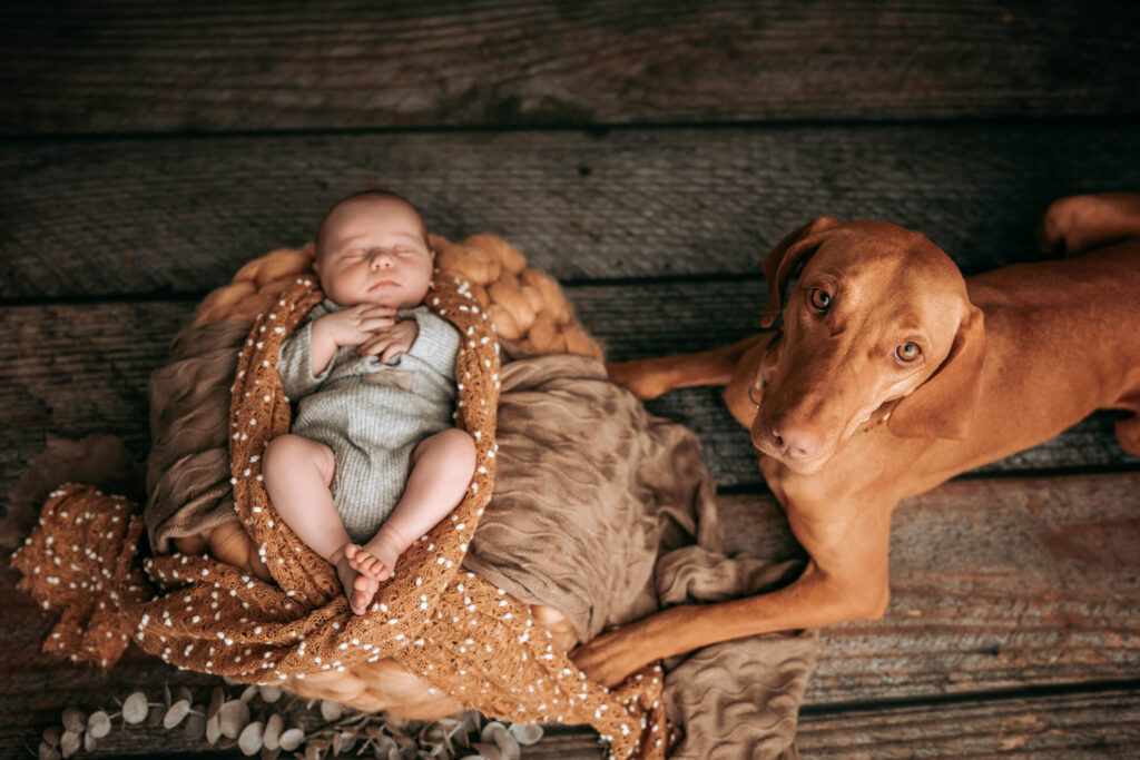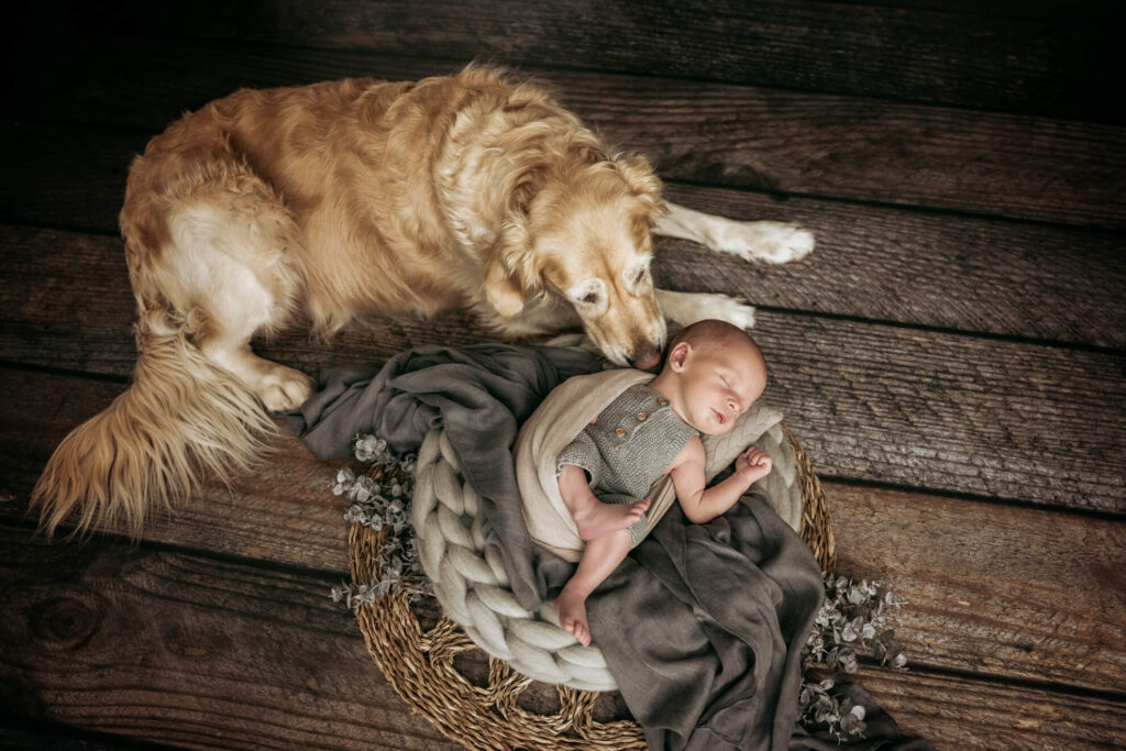 Auch bei einem Neugeborenenshooting darf Eure Fellnase nicht fehlen. Er ist der Beschützer der kleinen Engel und wie ein großer Bruder oder eine große Schwester. Lass dir die Chance nicht entgehen, einzigartige, süße und unvergessliche Momente festzuhalten.