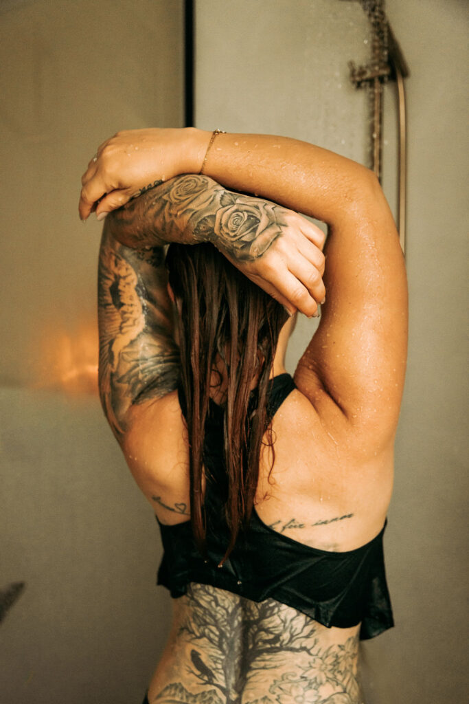 Gerne darfst Du mutig sein und auch ein bisschen mehr von Dir zeigen. Die Boudoirfotografie ist genau dafür da. Ob ganz gechillt auf der Couch, dem Teppich, im Stehen oder im Liegen. Es gibt auch hier viele Möglichkeiten, Deine Schönheit in Szene zu setzen. Für ein ganz besonderes Shootingerlebnis steht Dir auch unsere Shooting Dusche zur Verfügung. Das ist dann der krönende Abschluss Deines MeTime Shootings.