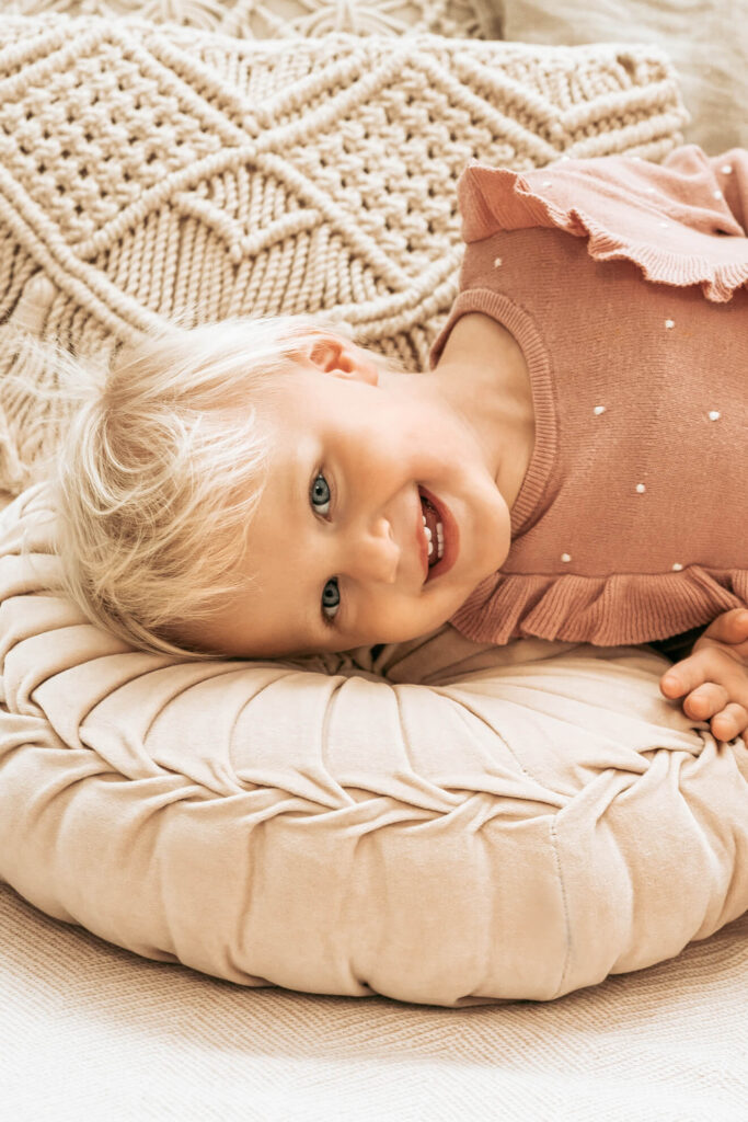 Kinder können oft mit dem Begriff "Fotoshooting" nicht viel anfangen und könnten sich eher schüchtern und nervös fühlen, wenn sie zu mir kommen. Indem Du das spielen und kuscheln betonst, schaffst Du eine entspannte Atmosphäre, in der sich Dein Kind wohl fühlen kann.