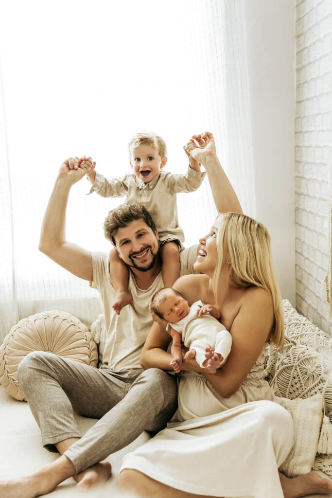 Im Studio stehen überall Bücher & Spielsachen. So kann Mama oder Papa mit ihm eine Geschichte lesen oder einen Turm bauen, während ich das Baby alleine fotografiere. Gebt dem Geschwisterchen die Aufmerksamkeit, die es braucht.